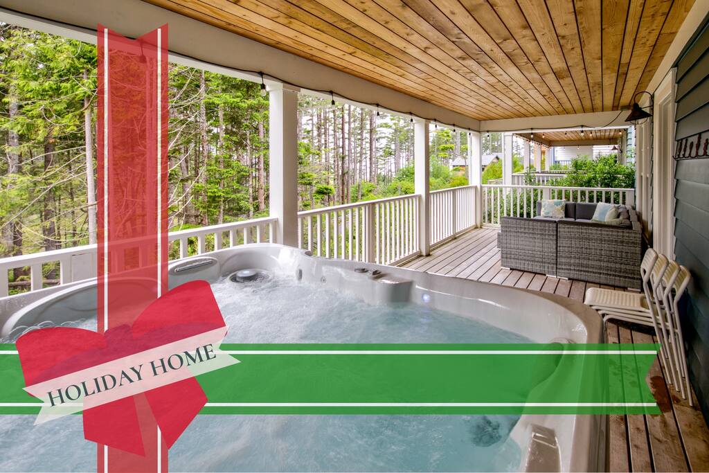 Welcome to Slow Coast! -Double patio with ocean & forest views. -5 min. walk to town & 8 min. walk to beach. -Private covered hot tub + outdoor lounge -Indoor fireplace -Pet free home. -Xbox for kids. -California King master suite on main floor Unwind and reconnect at this serene retreat, designed to embrace the simple joys of slowing down. Loving Slow Coast? Tap the ❤️ to save it to your wishlist for your next getaway!